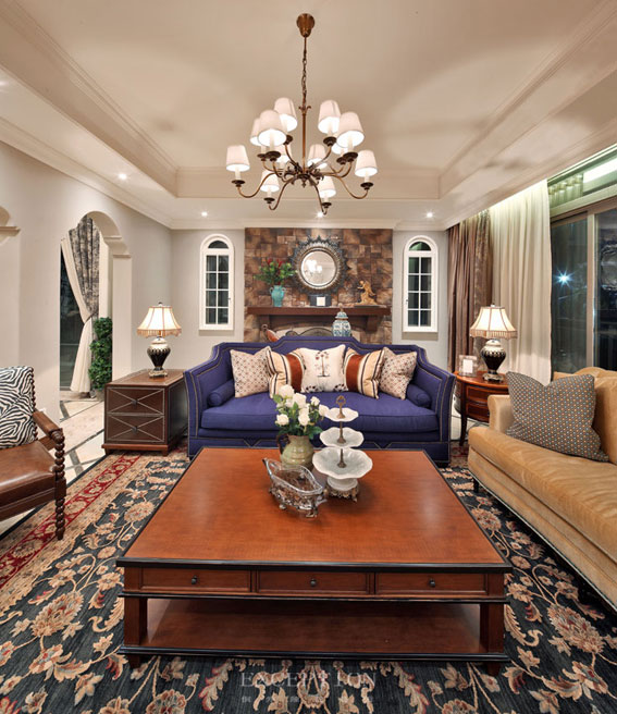 大面積落地窗,開放的格局布置讓客廳區(qū)顯得明亮寬敞,柔和的自然光線讓一切家私材質(zhì)袒露出原本的肌理和自然的色澤,不正迎合了美式生活方式的自由隨意、天然舒適么。