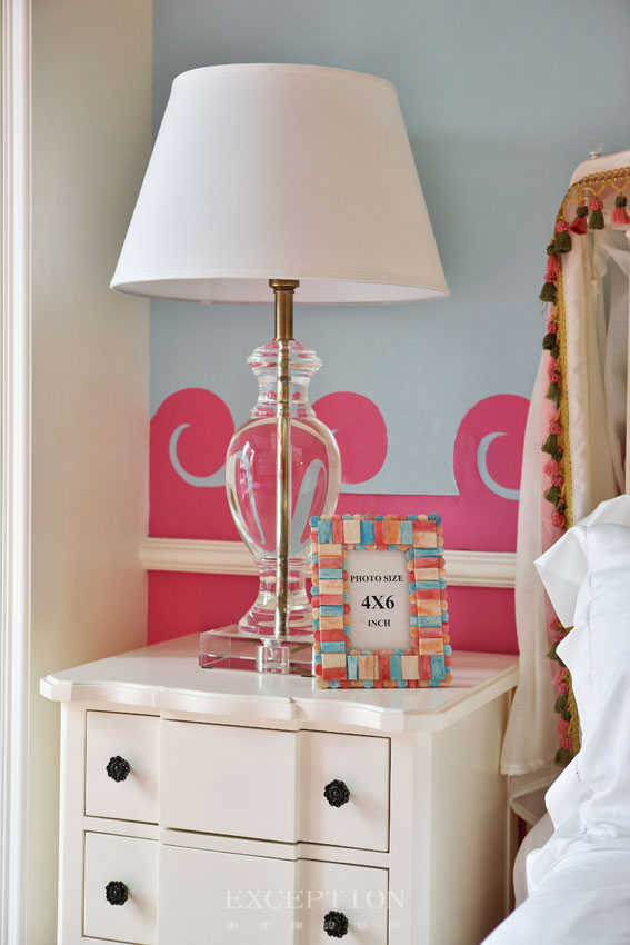讓開朗可愛的女兒在這樣一個(gè)粉彩色鋪就的房間成長,想來就是一件很美妙的事,慣常的粉藍(lán)與粉紅搭配,卻因細(xì)心繪制的海浪圖案萌生出些許的浪漫活潑,此時(shí)家私、床品色彩的選擇上便以白色為主,避免色彩的堆疊繁復(fù),給孩子一個(gè)優(yōu)雅純凈的空間。