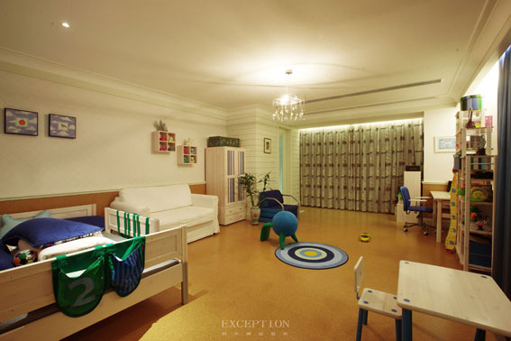 簡單、整體上色調(diào)一致,稀稀疏疏地點(diǎn)綴著些許綠色,藍(lán)色,活躍了整個房間的的氣氛。木紋感十足的小桌椅,還有各式各樣的玩具。足已勾起了記憶深處童年的回憶。值得一提的是,這里選用的是軟木地板,這樣小孩踩上去軟軟和和的,即使摔倒也不用擔(dān)心會磕到,碰到。處處留心皆學(xué)問。