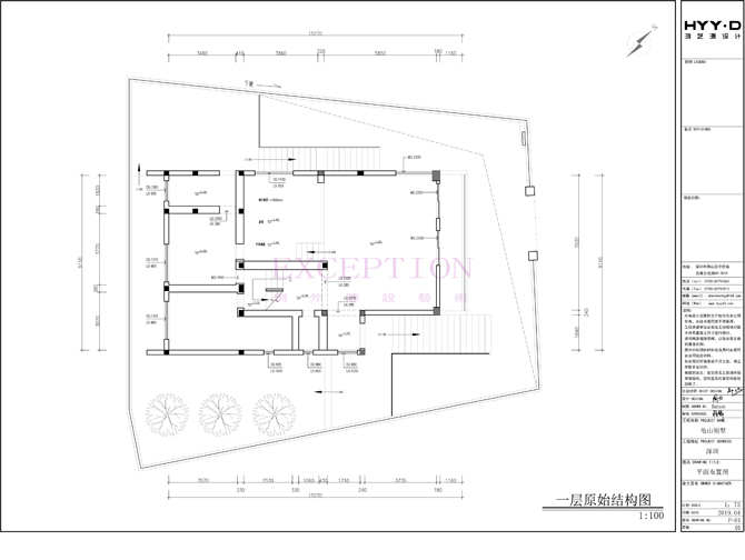 深圳龜山別墅設(shè)計一層原始結(jié)構(gòu)圖