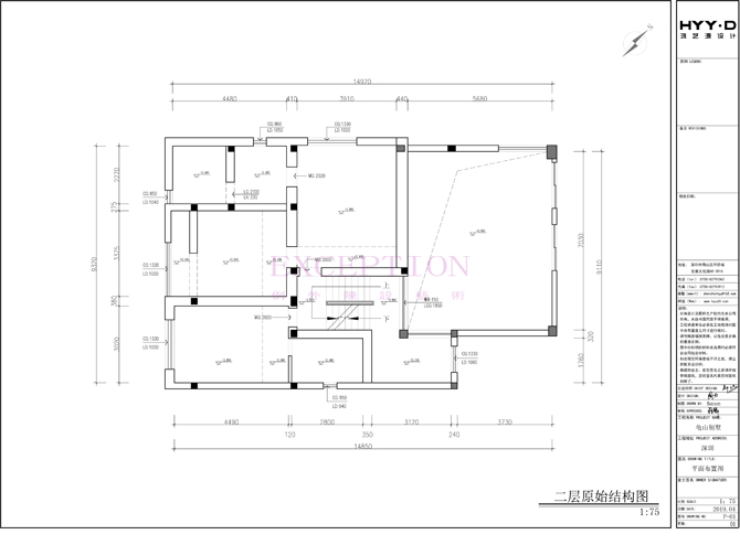 深圳龜山別墅設(shè)計二層原始結(jié)構(gòu)圖