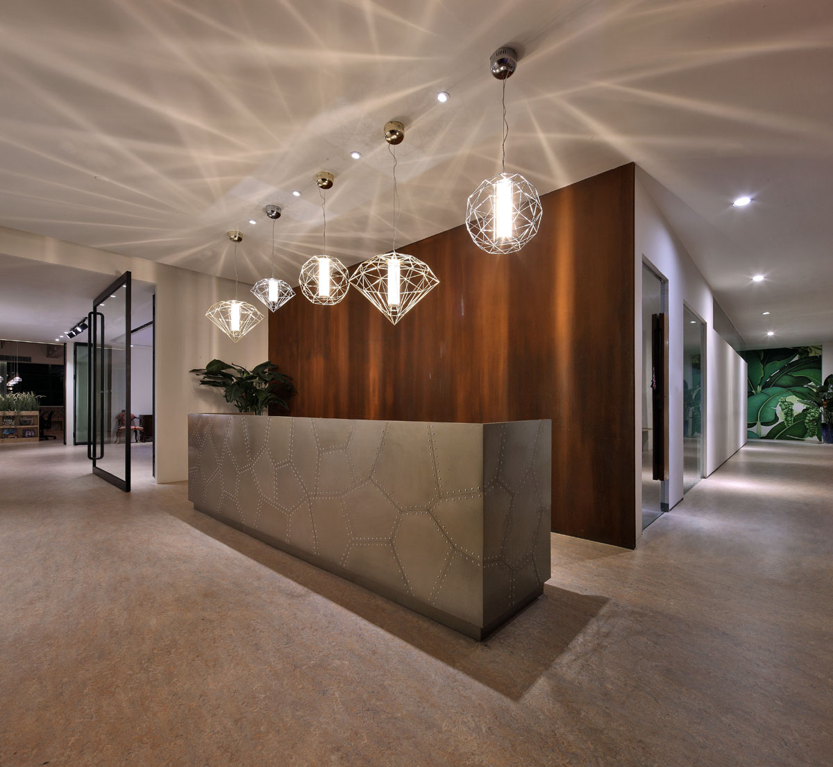 在室內(nèi)設(shè)計(jì)中,過(guò)渡與呼應(yīng)總是形影相伴的,具體到天花與地面、桌面與墻面、辦公家具之間……形體與色彩層次過(guò)渡自然、巧妙呼應(yīng)的話,往往能取得意想不到的效果。